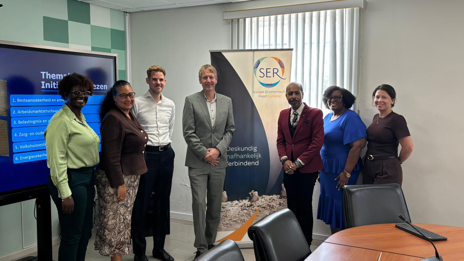 Willemstad, 26 di febrüari 2026 – Riba petishon di sr. Gerbert Kunst, representante di Hulanda na Aruba, Kòrsou i Sint Maarten (ku su sede ta na Willemstad), a tuma lugá djaweps 26 di febrüari último un reunion di karakter introduktorio ku e staf di sekretariado di Konseho Sosial-Ekonómiko (SER). Durante e enkuentro aki, a hiba un interkambio riba temanan sosioekonómiko aktual i a expresá e deseo pa mas koordinashon i kolaborashon.
